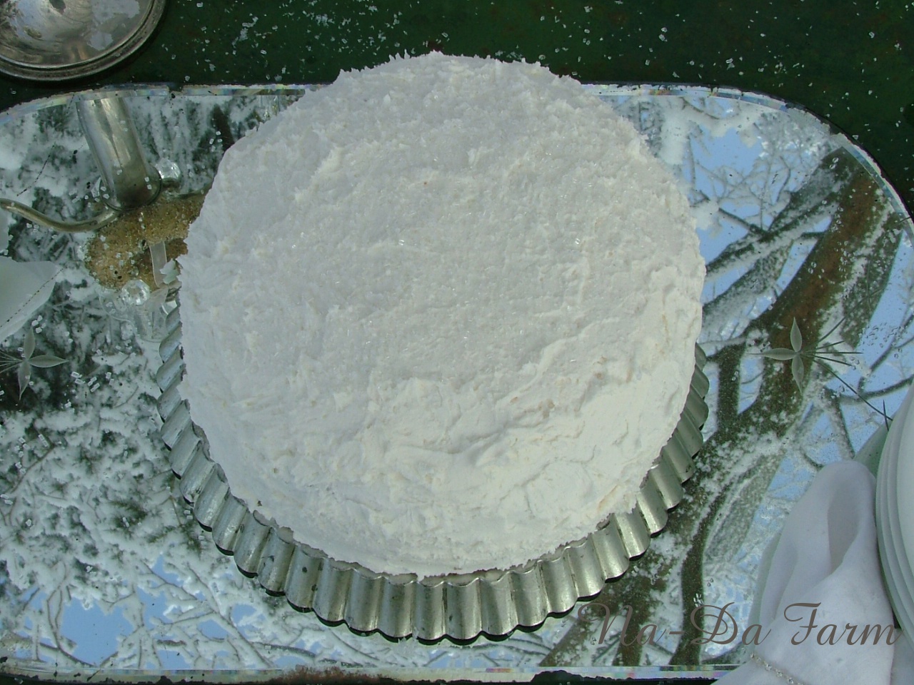 I quickly baked the cake, but had an idea to put it in the winter-storybook-like woods